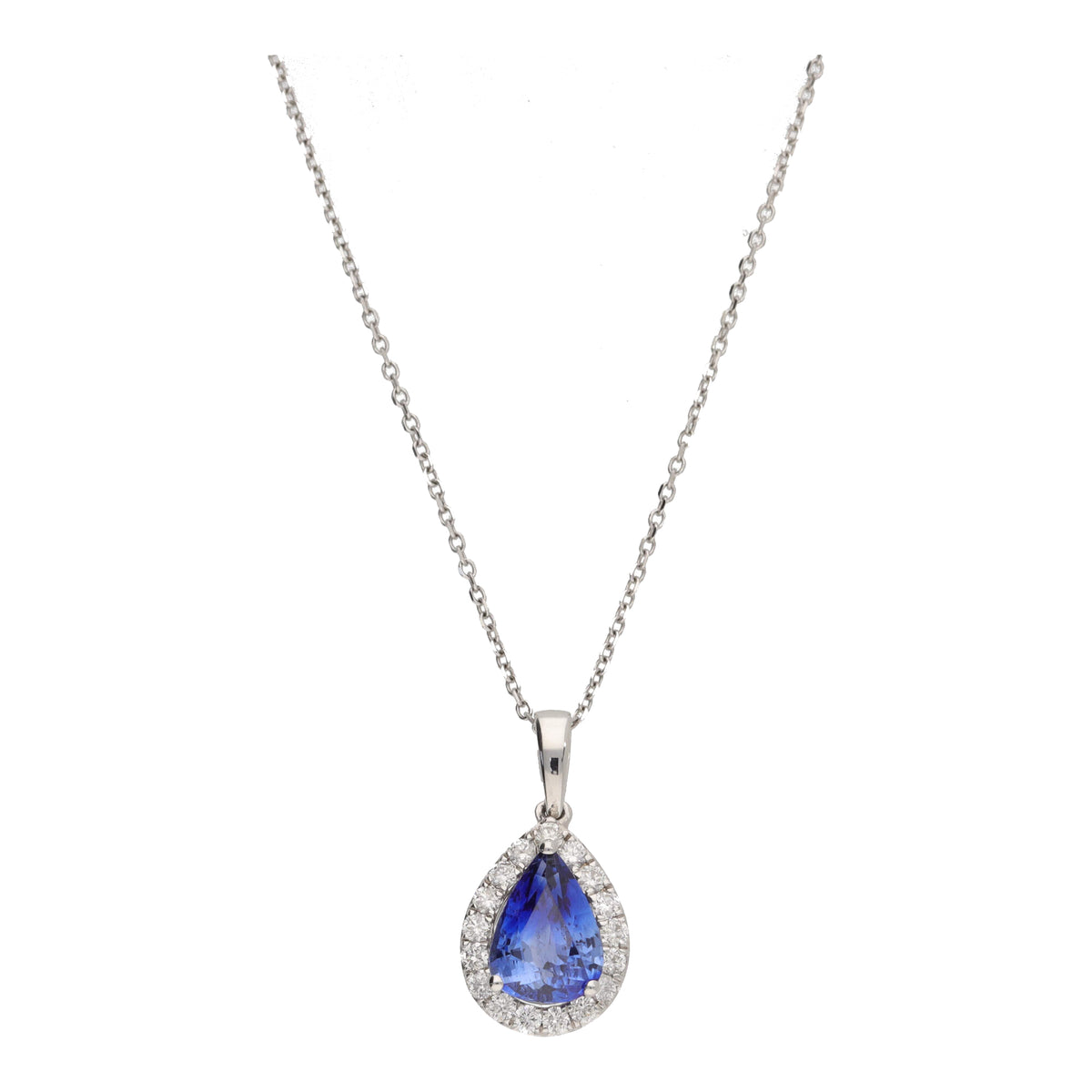 Blue Sapphire and Diamond Pear Shape 18ct White Gold Cluster Necklace