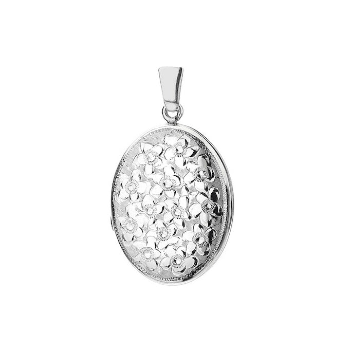 Floral Engraved Oval Silver Locket