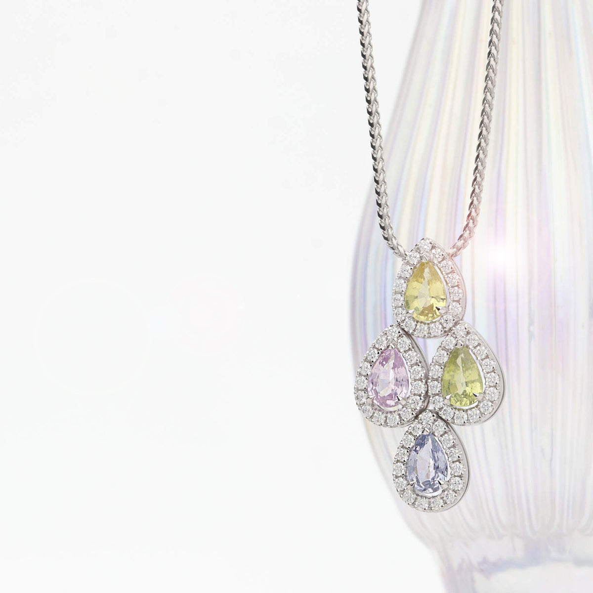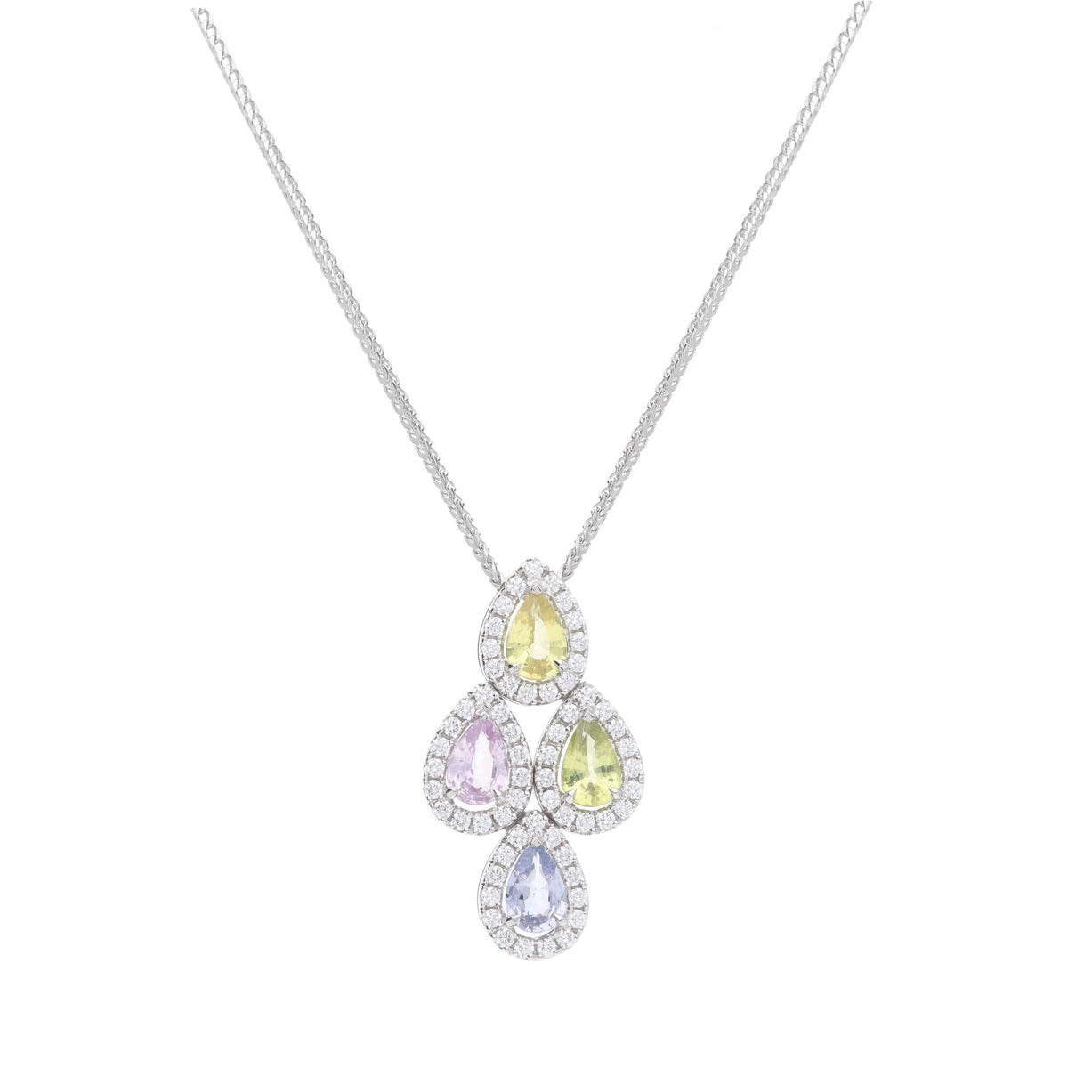 Multi Sapphire and Diamond 18ct White Gold Necklace
