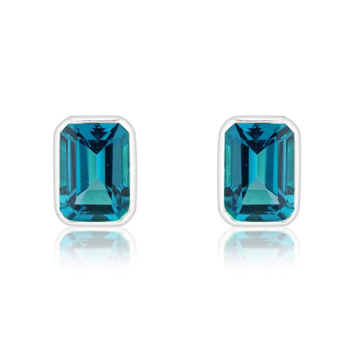 9ct White Gold London Blue Topaz Octagon Stud Earrings.