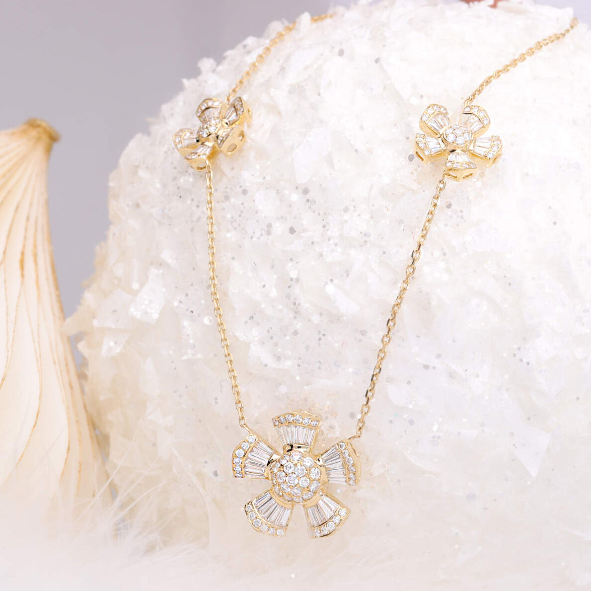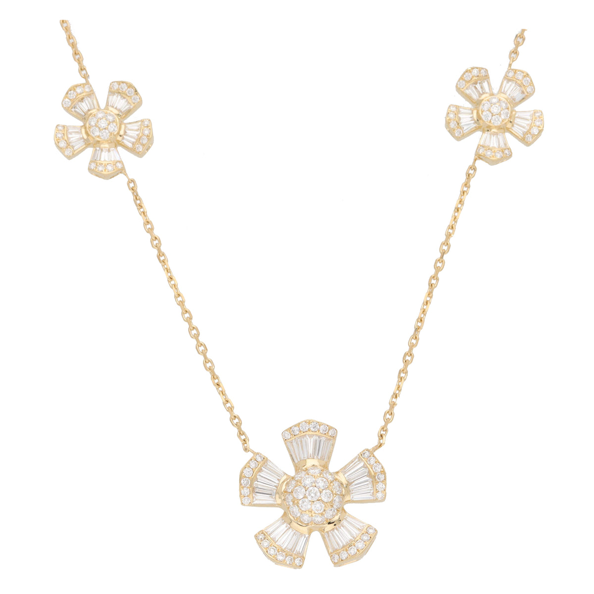 Triple Diamond Flower Motif 18ct Yellow Gold Necklace