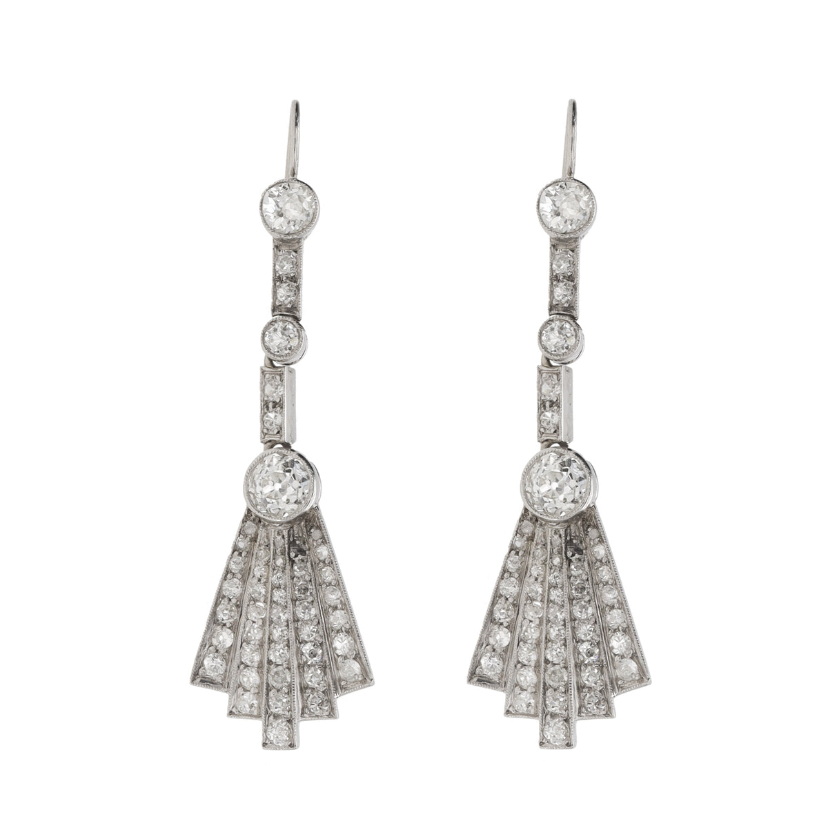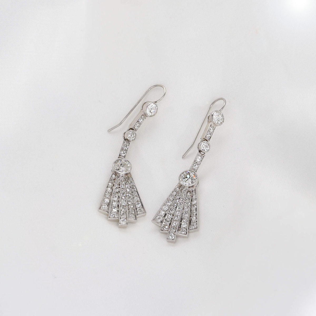 Pre-Owned Art Deco Diamond 1.80ct Drop Earrings