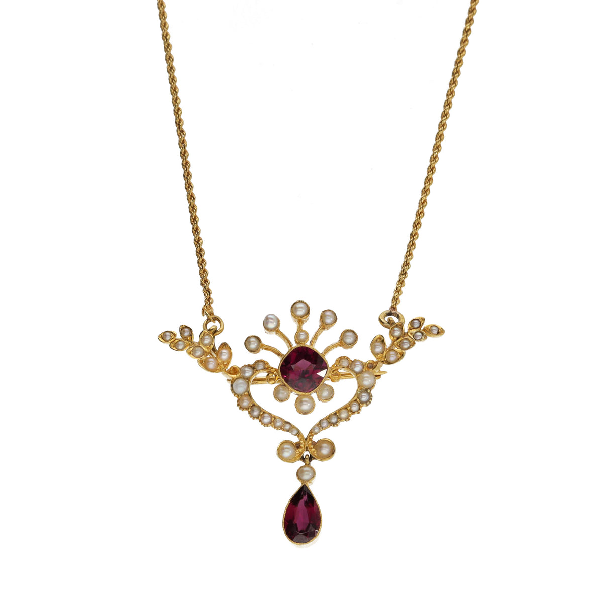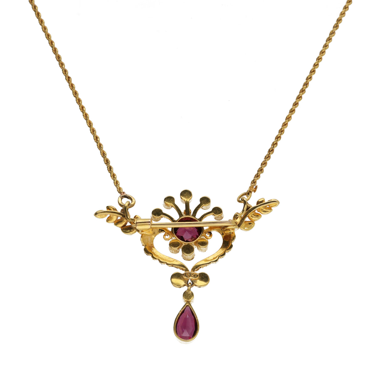 Pre-Owned Rhodolite Garnet and Seed Pearl Brooch Pendant