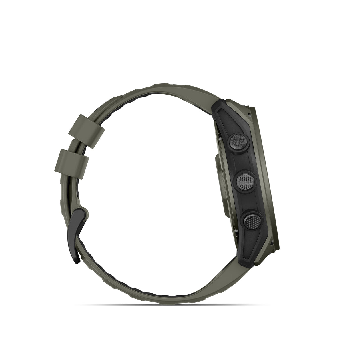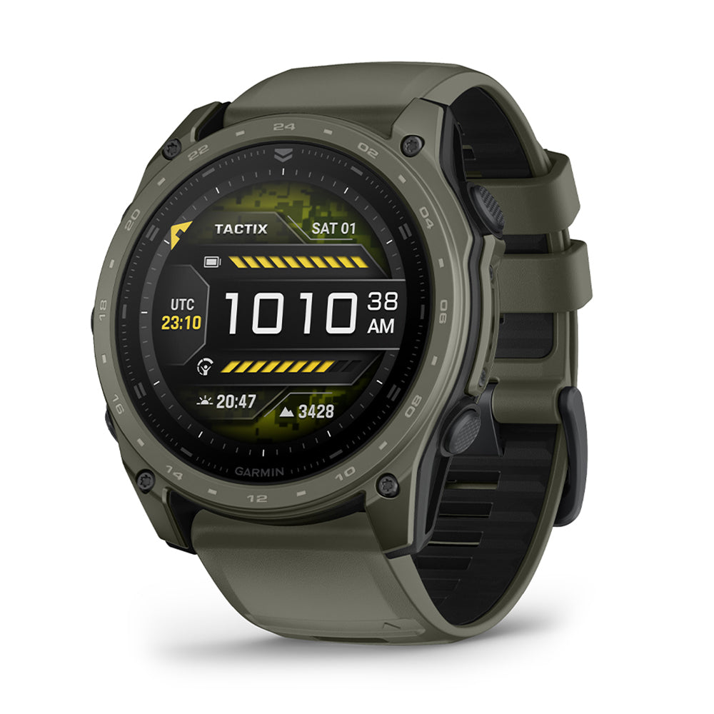 Rise above with tactix® 8. It's the ultimate tactical smartwatch, featuring a stunning AMOLED display, Cerakote® coating, sapphire lens and a 40-metre dive rating. Pair with your smartphone for on-wrist calling with the built-in speaker and mic. Dedicated tactical features include a rucking activity and preloaded Applied Ballistics® solver along with a jumpmaster activity, waypoint projection, stealth mode, kill switch and more. Guide the mission with a built-in LED flashlight. Train like never before with strength training plans, sport-specific workouts and daily suggested strength workouts for runners and cyclists. Navigate the outdoors with superior positioning accuracy, thanks to multi-band GPS with SatIQ™ technology plus built-in sensors for the 3-axis compass, gyroscope and barometric altimeter. Push harder with up to 29 days of battery life in smartwatch mode.