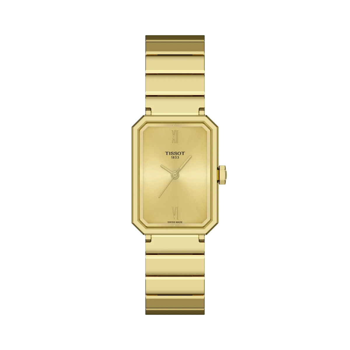 The SRV watch is inspired by Art Deco, a distinctive style which flourished in the 1920s. Characterised by geometric shapes and abstract patterns, it became a dominant style in architecture, interior design, fashion and graphic arts. While the SRV is directly inspired from a model from 1975, that very design was itself a reinterpretation of Tissot’s earlier creations from the 1920s. SRV stands for Sapphire Rectangle V, the perfect name for a faceted sapphire glass with a rectangular silhouette, and a 5-bar water resistance, symbolised by the roman number 5. Its quartz movement delivers reliable precision while the End-Of-Life indicator lets you know when it’s time for a battery change. The metal bracelet is comfortable, robust, easy to clean and long-lasting.