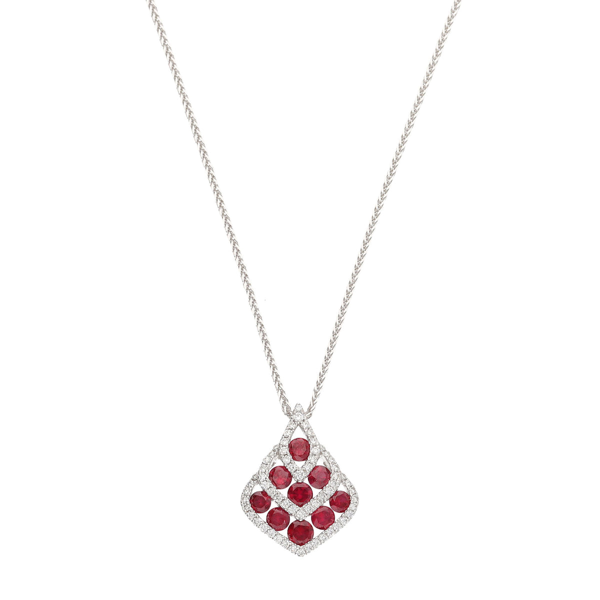 Ruby and Diamond 18ct White Gold Chevron Necklace