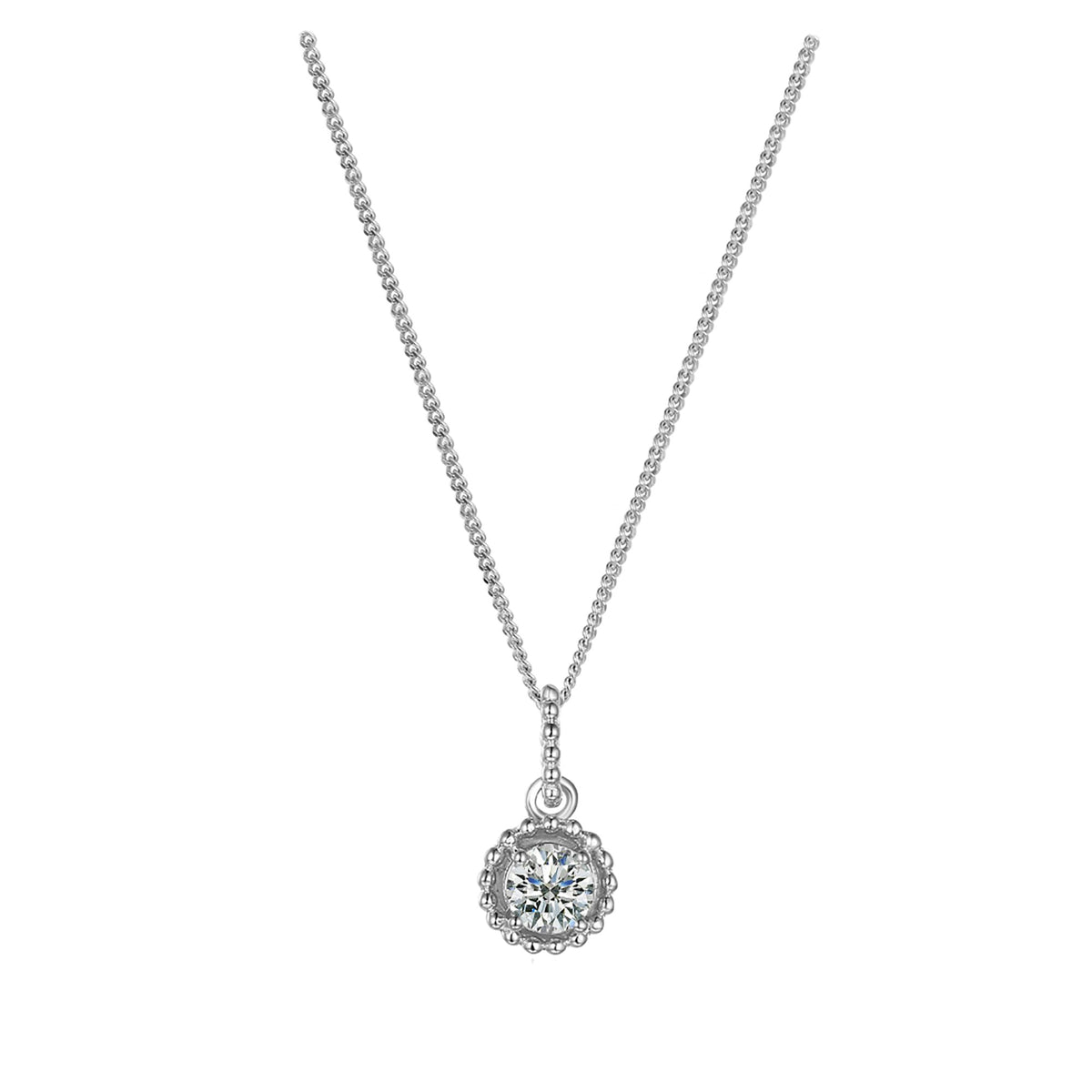 This faceted brilliant cut stone is round and will delight anybody who likes tasteful and glamorous pieces. An affordable luxury that delivers charm and elegance.