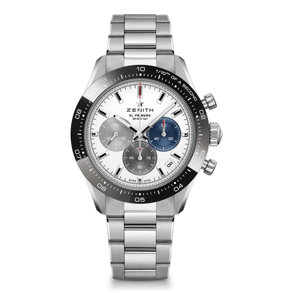 The Chronomaster Sport is the culmination of over 50 years of mastery of the sporty chronograph and the automatic chronograph calibre. Equipped with the latest generation of the El Primero chronograph calibre, it measures and displays elapsed time with a precision of 1/10th of a second in a design that is contemporary yet unmistakably Zenith.