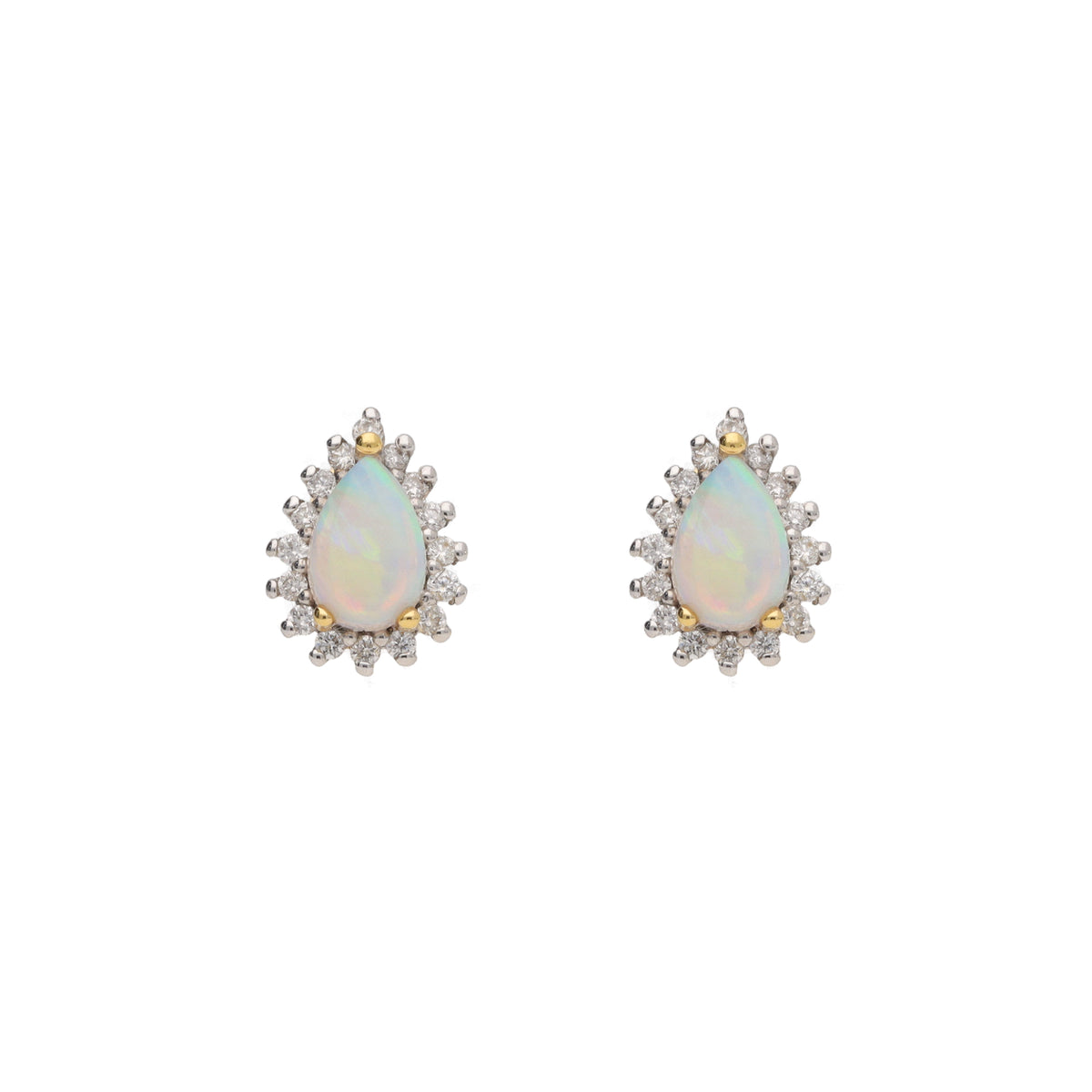 Opal and Diamond 18ct Yellow Gold Cluster Stud Earrings
