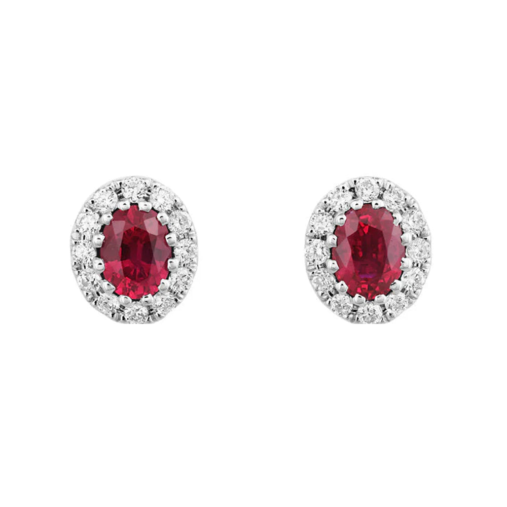 Ruby and Diamond 18ct White Gold Oval Cluster Stud Earrings