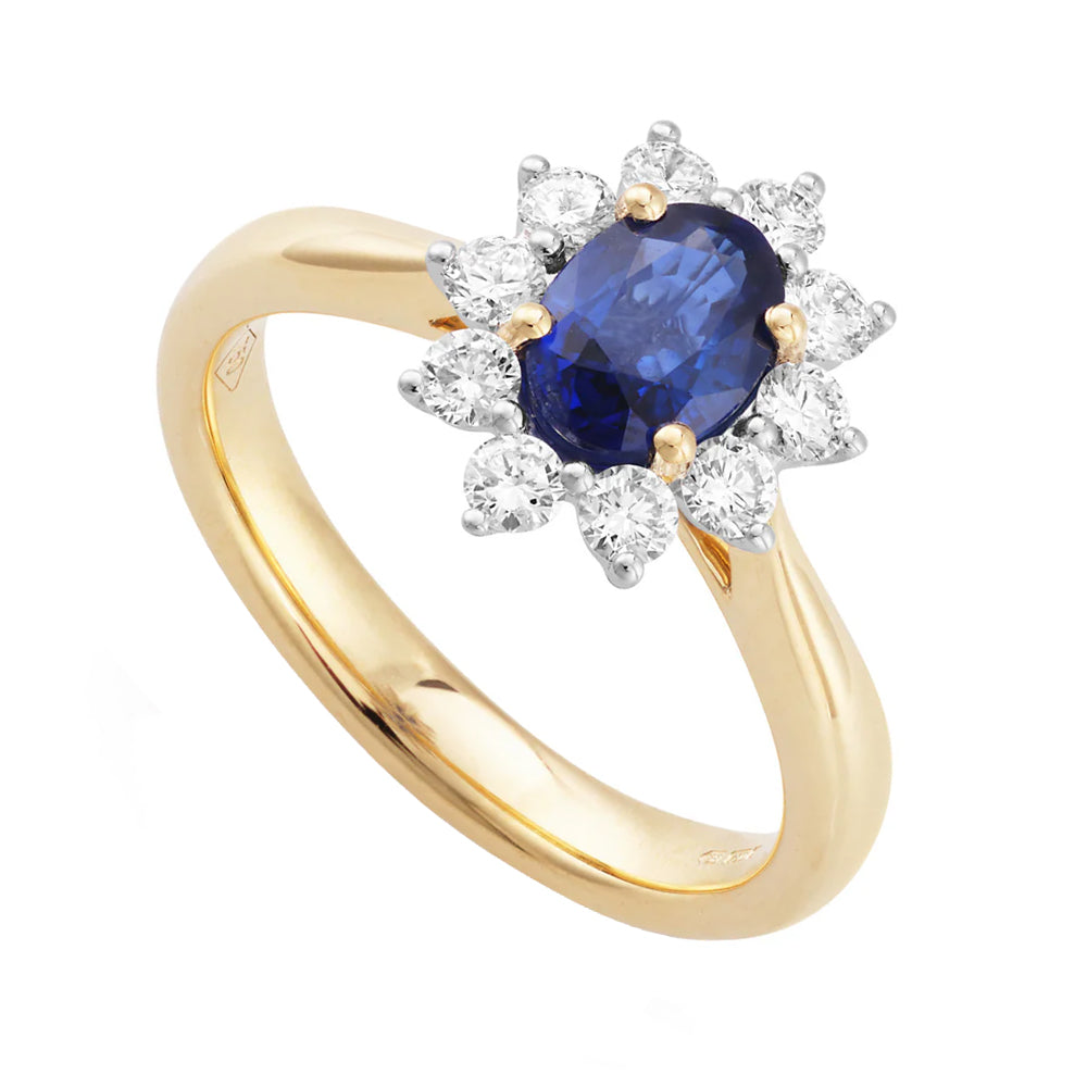 Sapphire and Diamond 18ct Yellow Gold Oval Cluster Ring