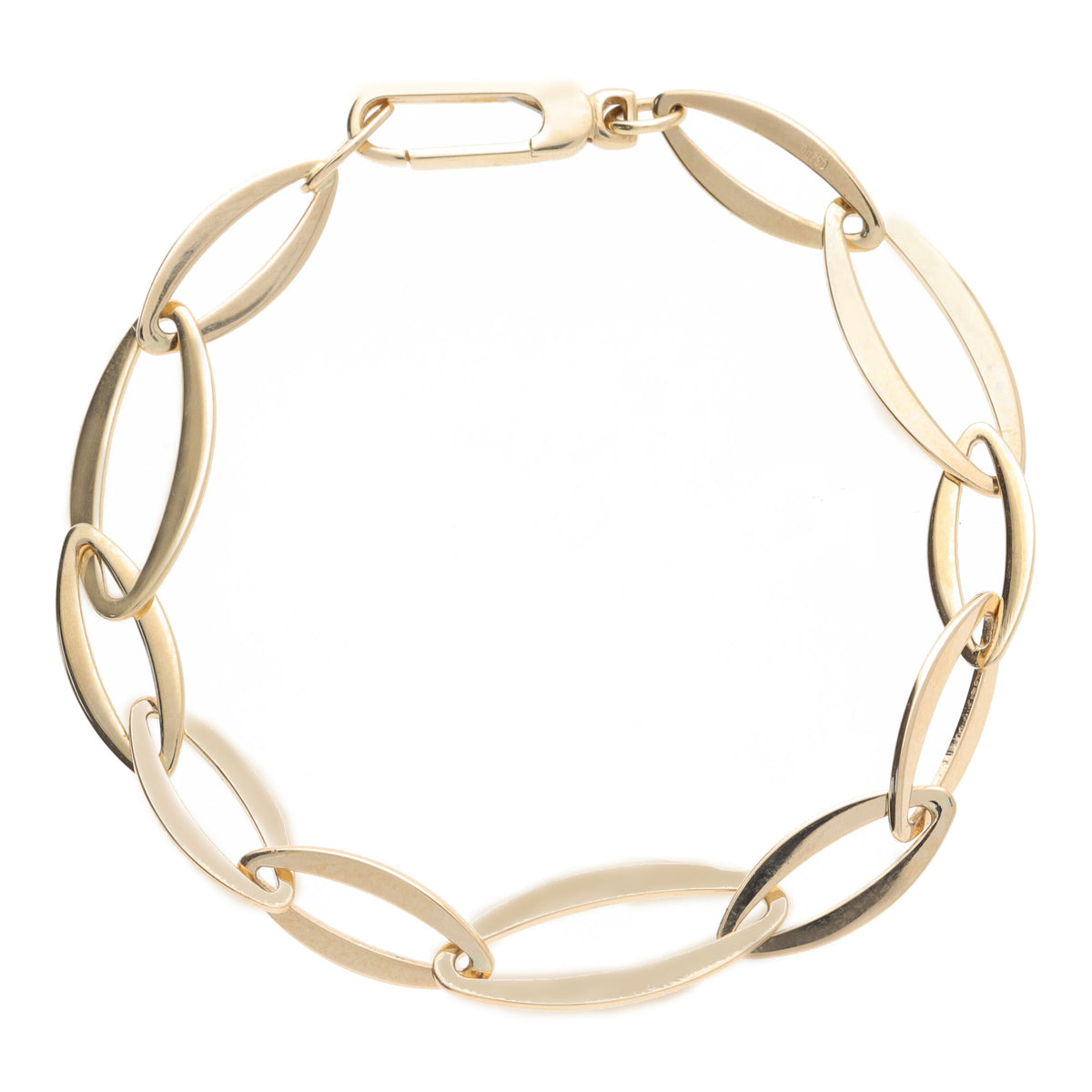 Classic open marquise link bracelet. 7.5 inches long. 18ct yellow gold.