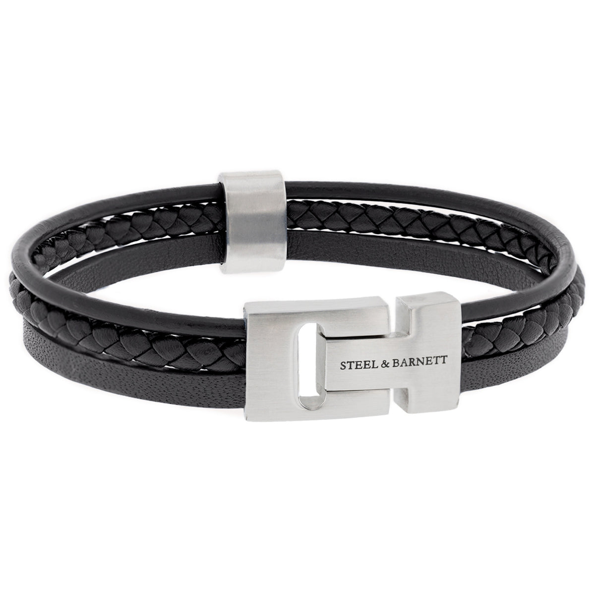 Steel and Barnett Cole Multi Strand Black Leather Men's Bracelet - Medium