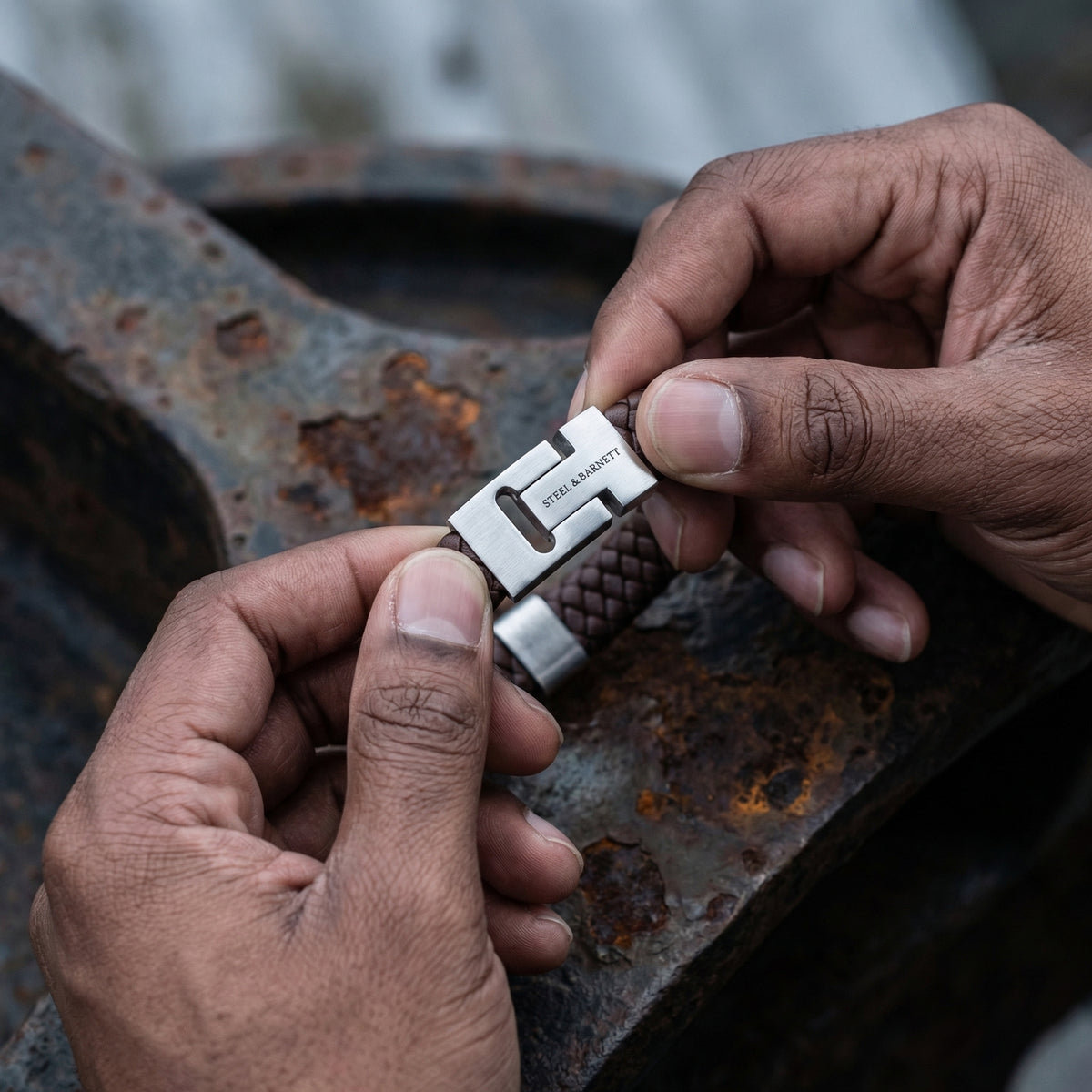 Steel and Barnett Harrison Thick Braided Brown Leather Men's Bracelet - Small