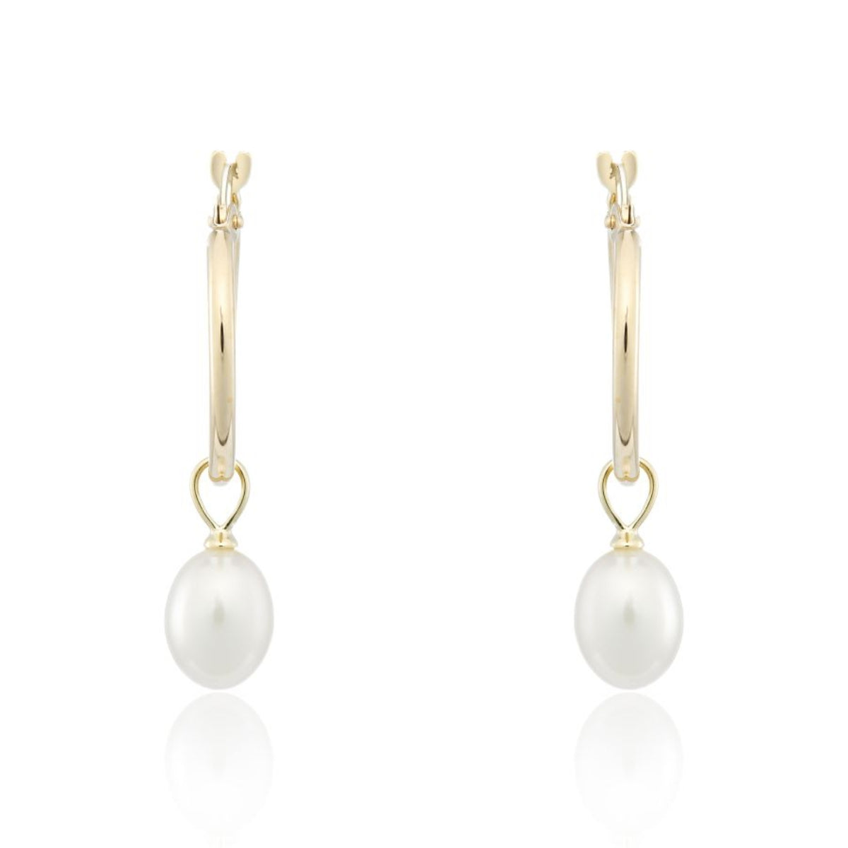 Cultured Pearl Ear Charm 9ct Yellow Gold Hoop Earrings