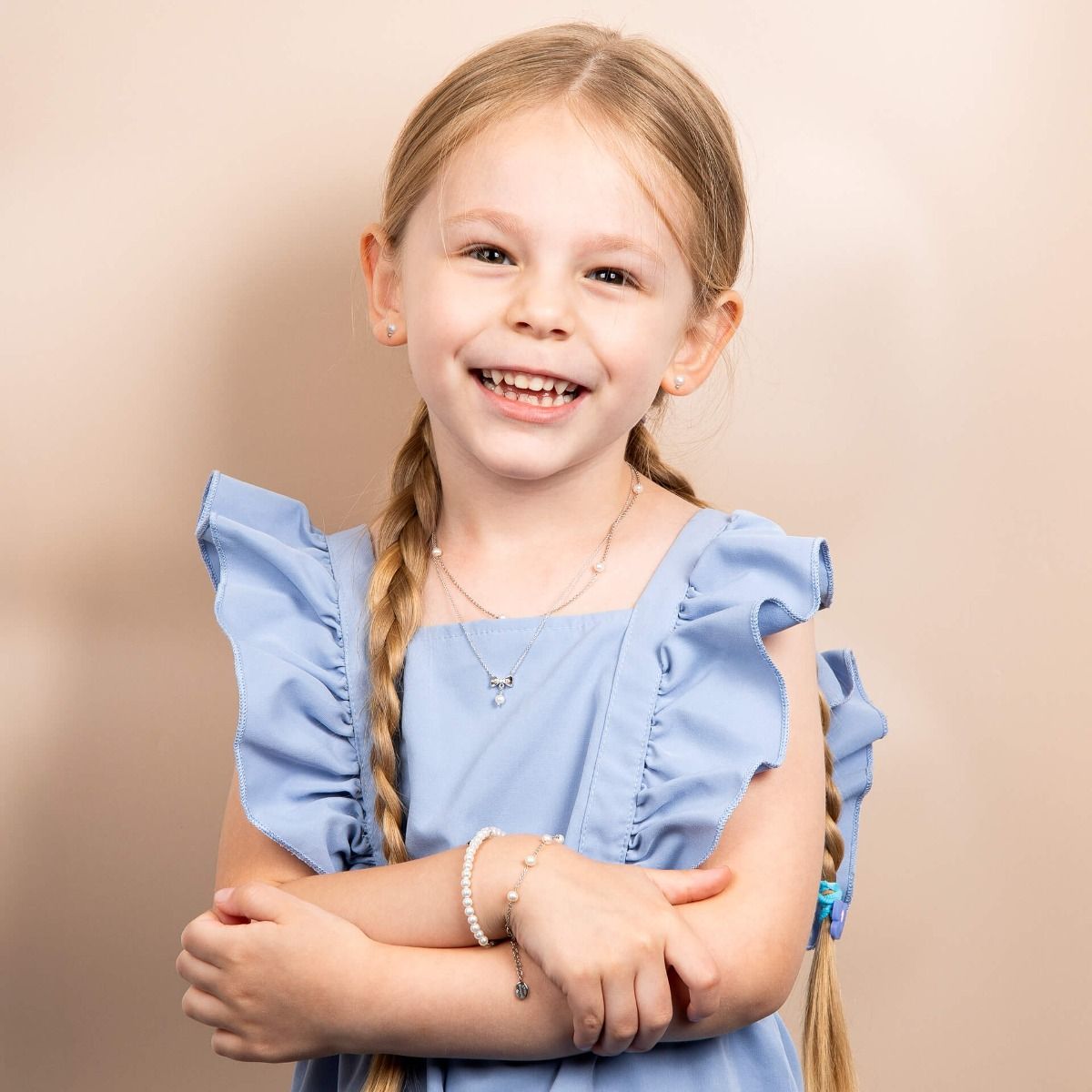 Inspired by the whimsical dreams of children, these stud earrings are crafted in recycled sterling silver with a luxurious platinum plating and evoke a sense of playful imagination. Featuring freshwater pearls and dainty diamonds, these earrings are ideal for Christenings or will make a cute gift for your flower girl. More Information SKU: E6392W EAN: 5055938340242 Material: Recycled Sterling Silver Metal Plating: Platinum Plated Total Diamond Carat Weight: 0.03ct Gemstone: Diamond and White Freshwater Pearl Weight: 0.75g Dimensions (WxHxD): 4.3 x 7.5 x 4.3mm