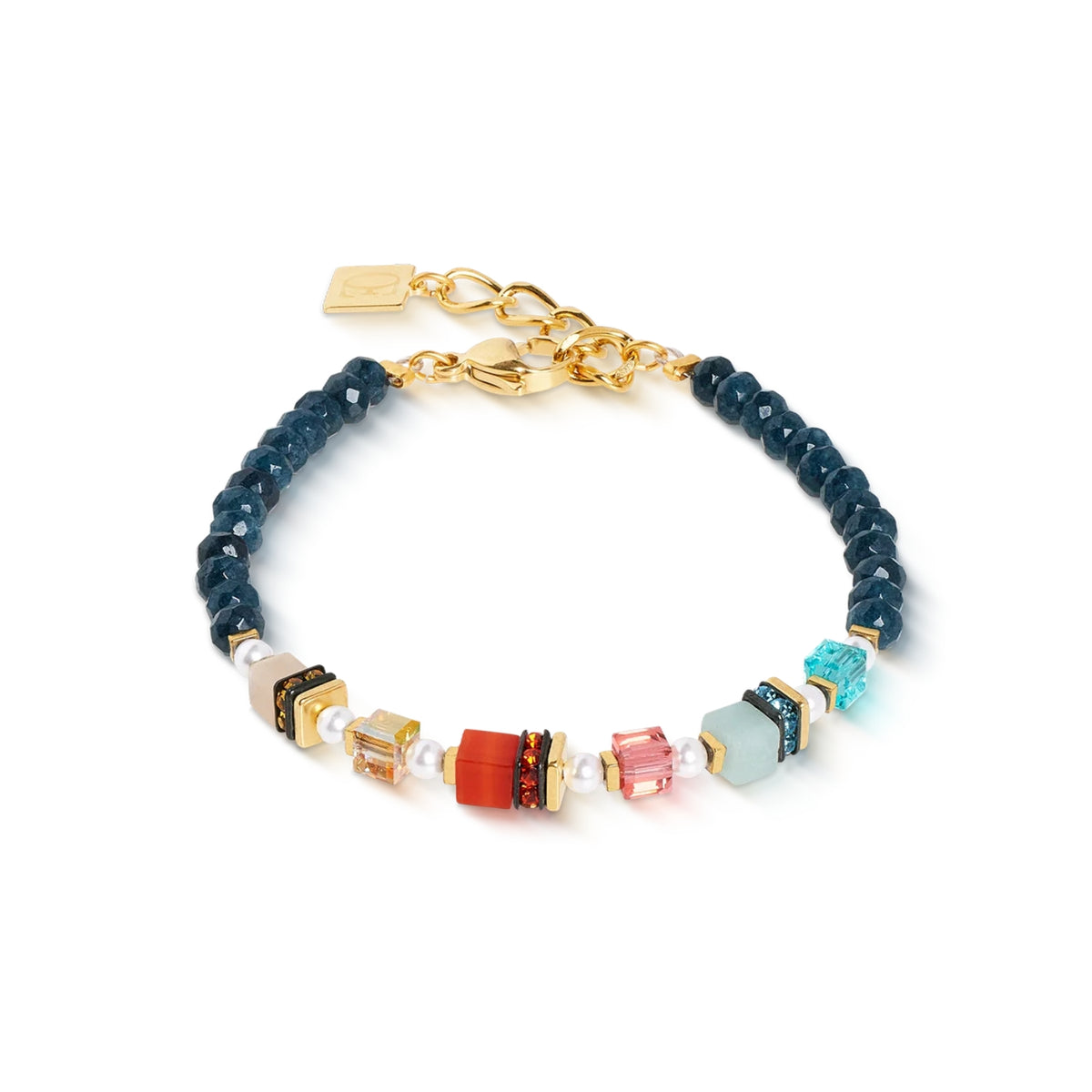 The bracelet from the Sparkling Princess series brings colour to everyday life. With gemstones such as carnelian, jade, aventurine and blue accents as well as finely shimmering Crystal Pearls by Swarovski®, it is a real highlight. Gold-coloured stainless steel stylishly rounds off the design. Handmade in Germany - this bracelet is ideal for wearing with the matching necklace or earrings from the range.
