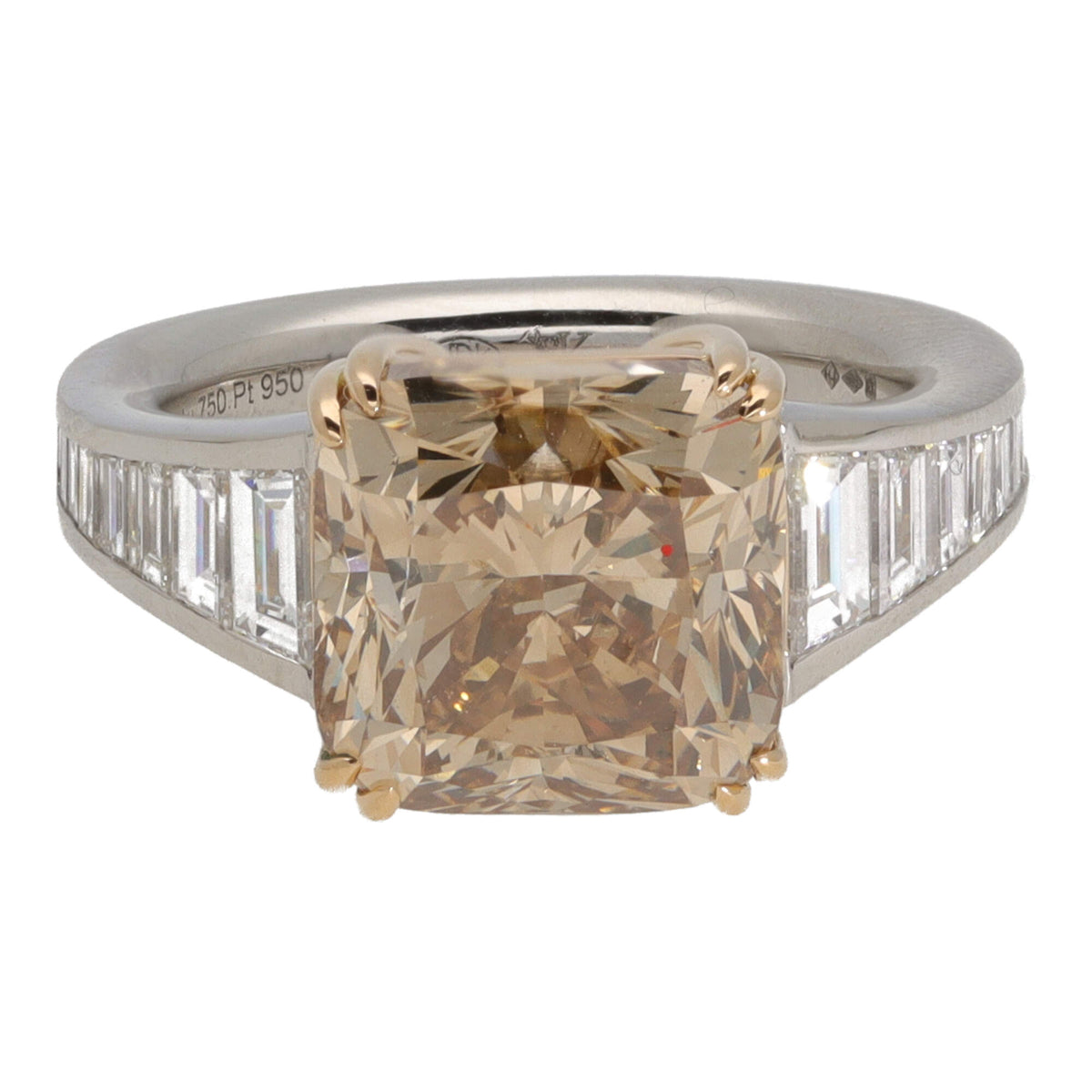Fancy Light Brown 7.01ct Natural Diamond Platinum Ring