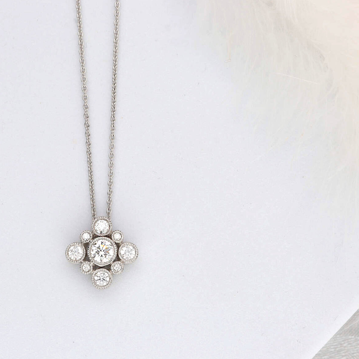 Diamond 0.70ct 18ct White Gold Cluster Necklace