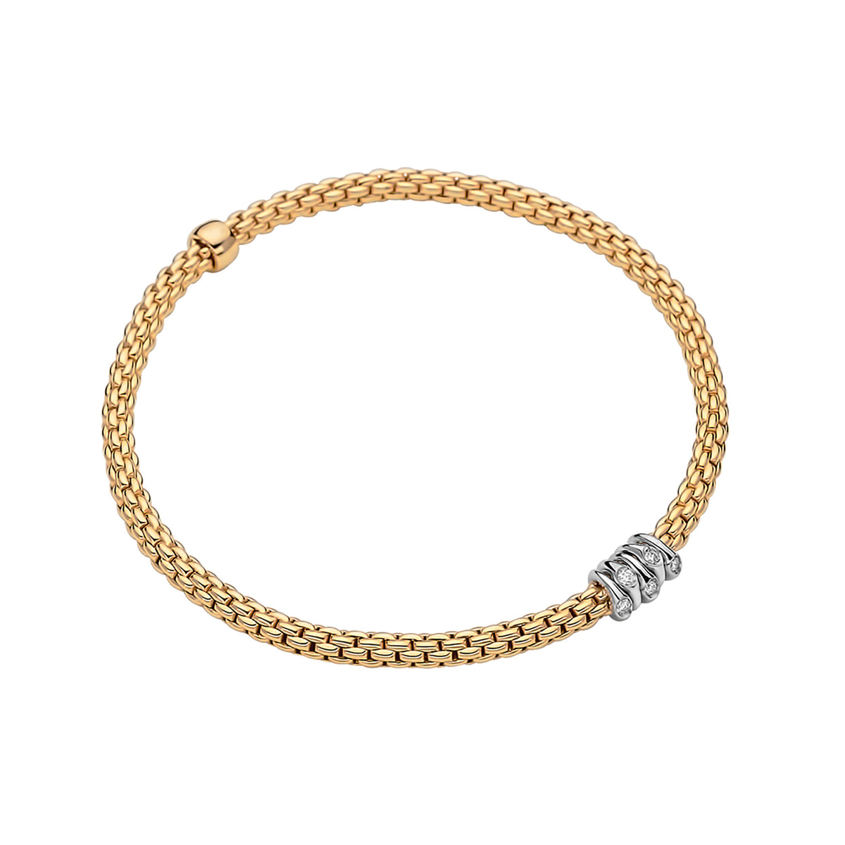 Fope Flex'it Prima 18ct Yellow Gold 0.07ct Diamond Set Bracelet Medium