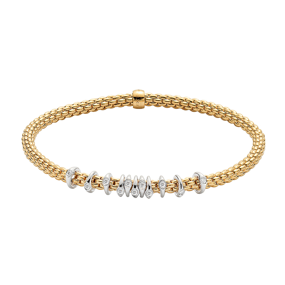 Fope Flex'it Prima 18ct Yellow Gold 0.15ct Diamond Set Bracelet Medium