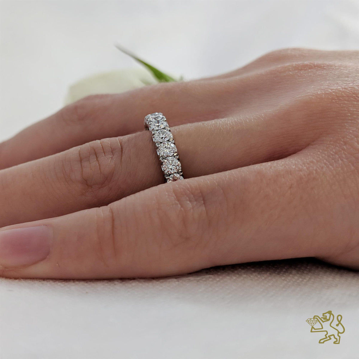 The 8 diamonds are set in platinum on an 18ct gold band using a mix of traditional and cutting-edge techniques. While the platinum enhances the brilliance of the diamonds, the hand-finishing of our rings allows every surface to be polished to a mirror finish, and the microscope-assisted stone setting means each diamond is set perfectly and securely.