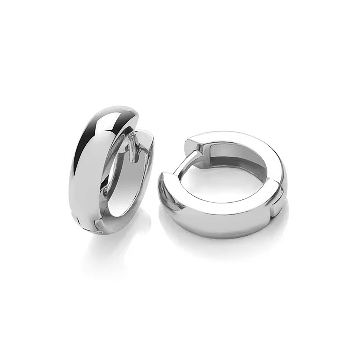 D-Shape 9ct White Gold Narrow Huggie Hoop Earrings