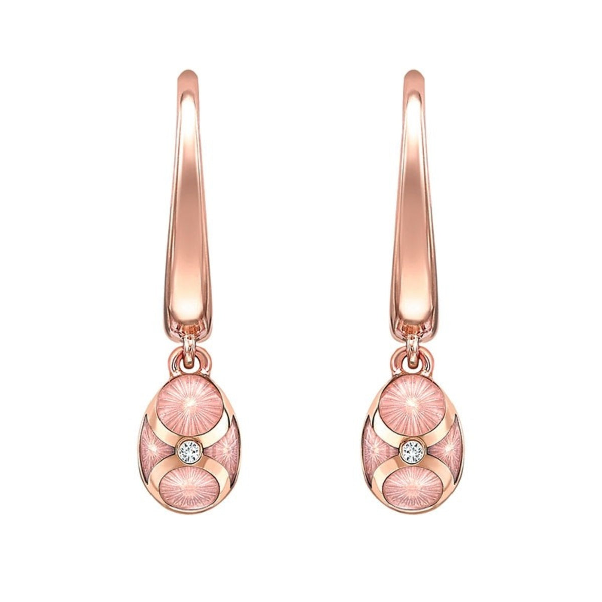 Faberge Heritage 18ct Rose Gold Diamond Pink Guilloché Enamel Hoop Drop Earrings