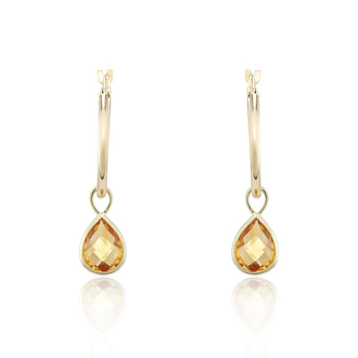 Adorn your ears with these elegant 9ct yellow gold drop hoop earrings, featuring a pear-shaped citrine gemstone pendant.