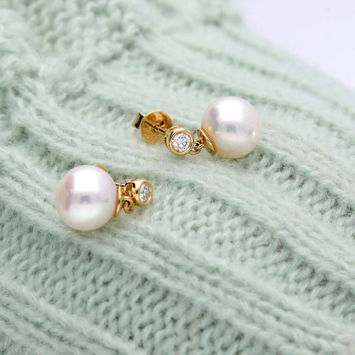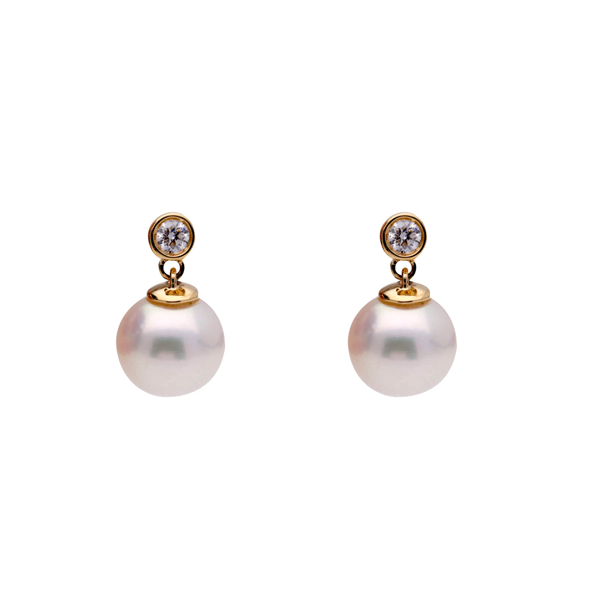 Elevate your look with these timeless white pearl drop earrings, featuring lustrous 8–8.5mm pearls that offer classic elegance with every movement. Each pearl is beautifully complemented by a sparkling 0.11ct diamond, adding a refined touch of brilliance.Crafted in luxurious 18ct yellow gold, these earrings combine warm tones with the soft sheen of pearls, creating a sophisticated and versatile design suitable for both everyday wear and special occasions. A graceful addition to any jewellery collection, and a perfect gift for someone who appreciates enduring style.