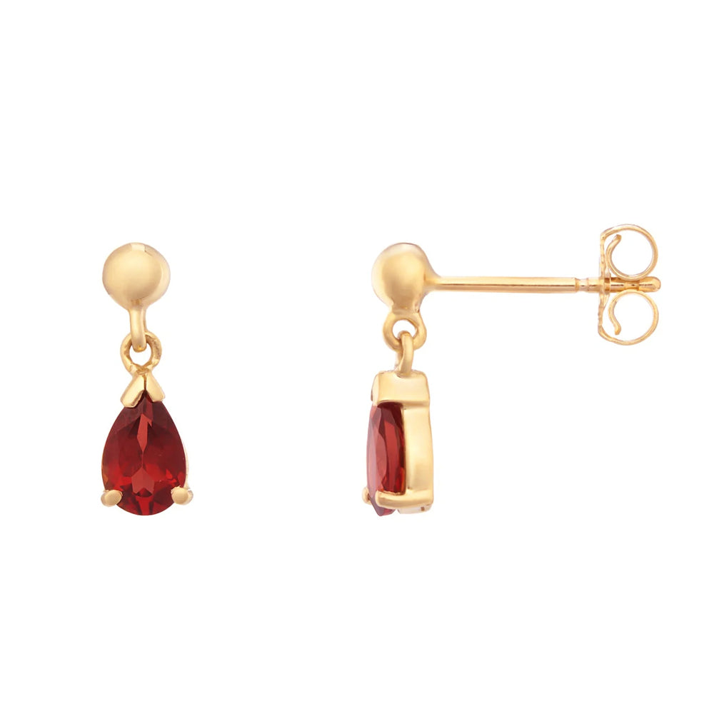 Ruby Pear Cut 9ct Yellow Gold Drop Earrings