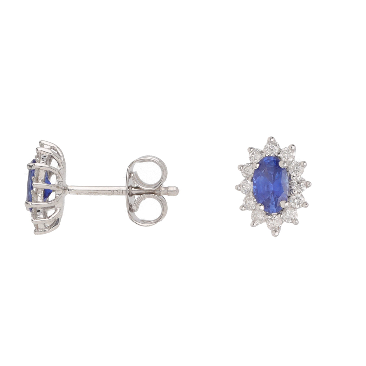 Sapphire and Diamond 18ct White Gold Cluster Stud Earrings