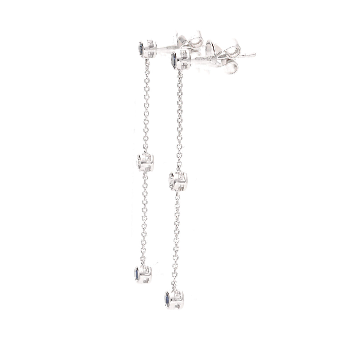 Sapphire and Diamond 18ct White Gold Station Link Chain Drop Earrings