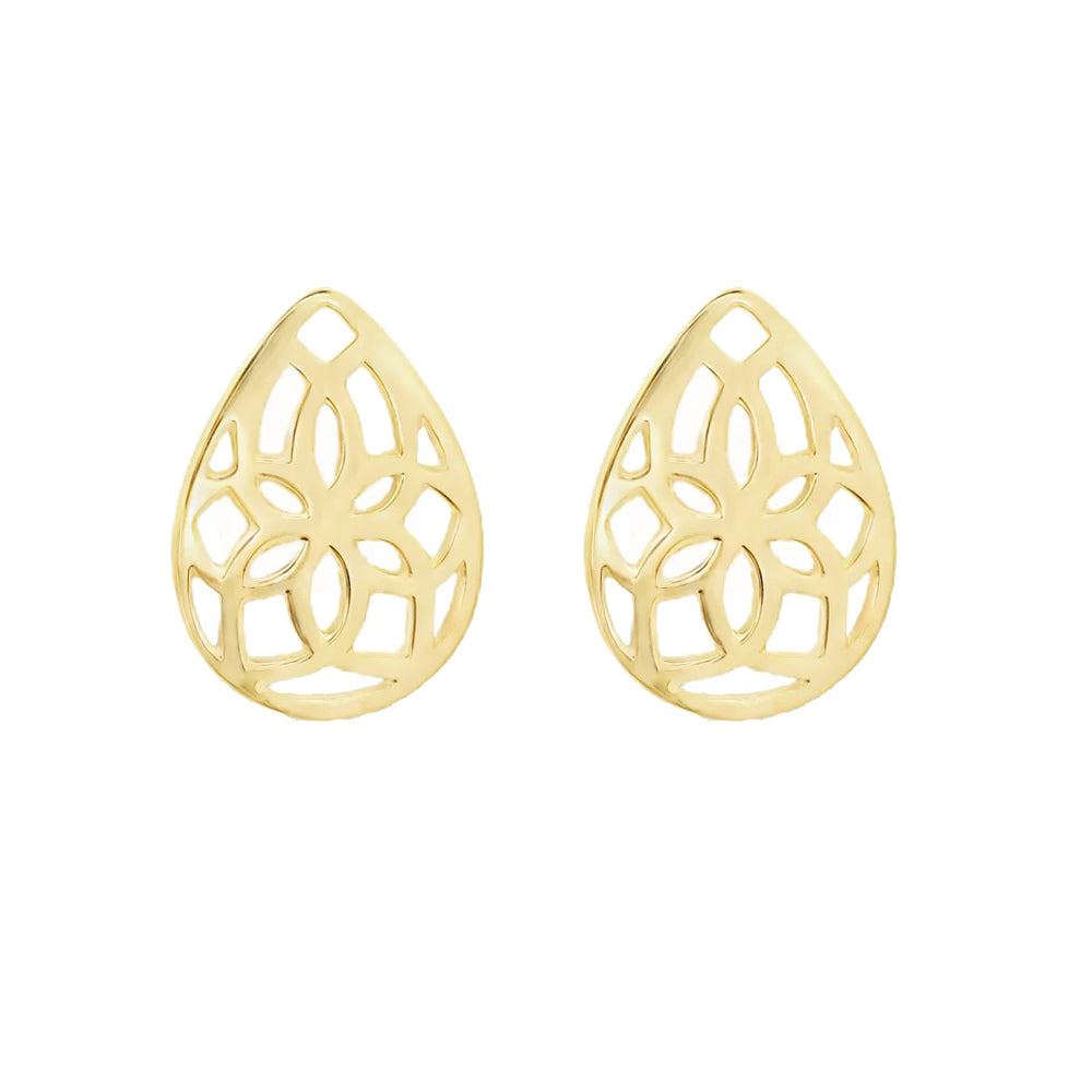 Teardrop Floral Filigree 9ct Yellow Gold Stud Earrings