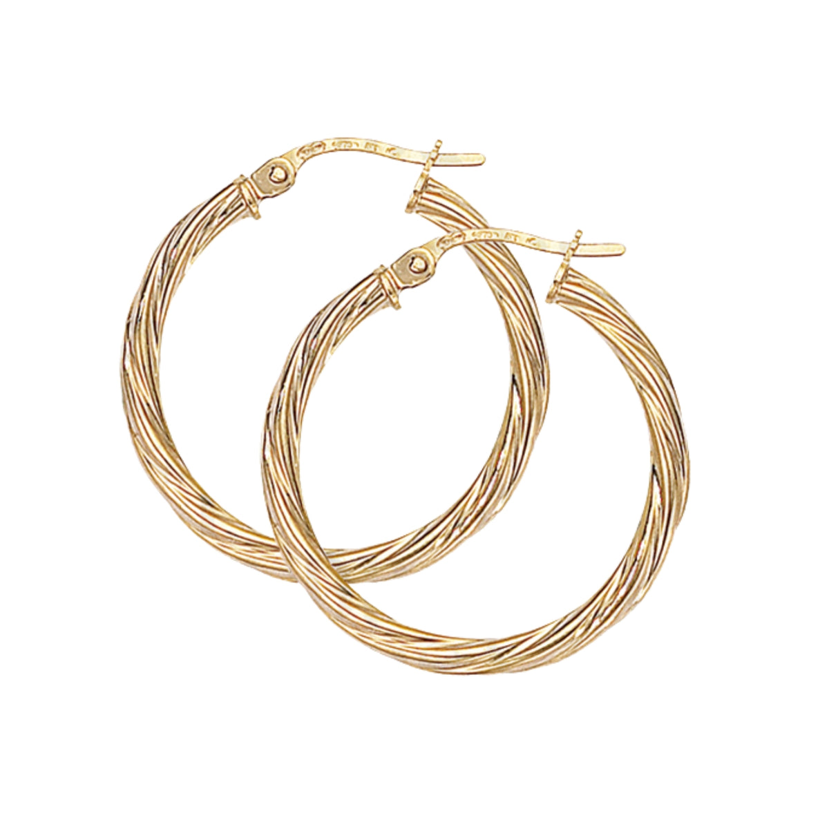 A classic pair of round twisted hoops in 9ct yellow gold.