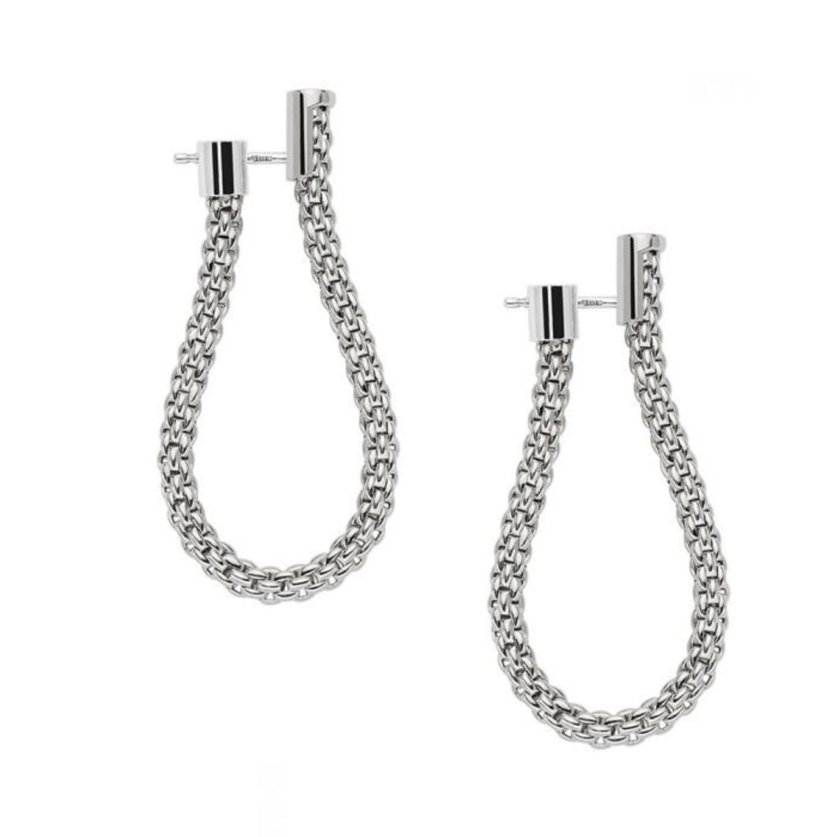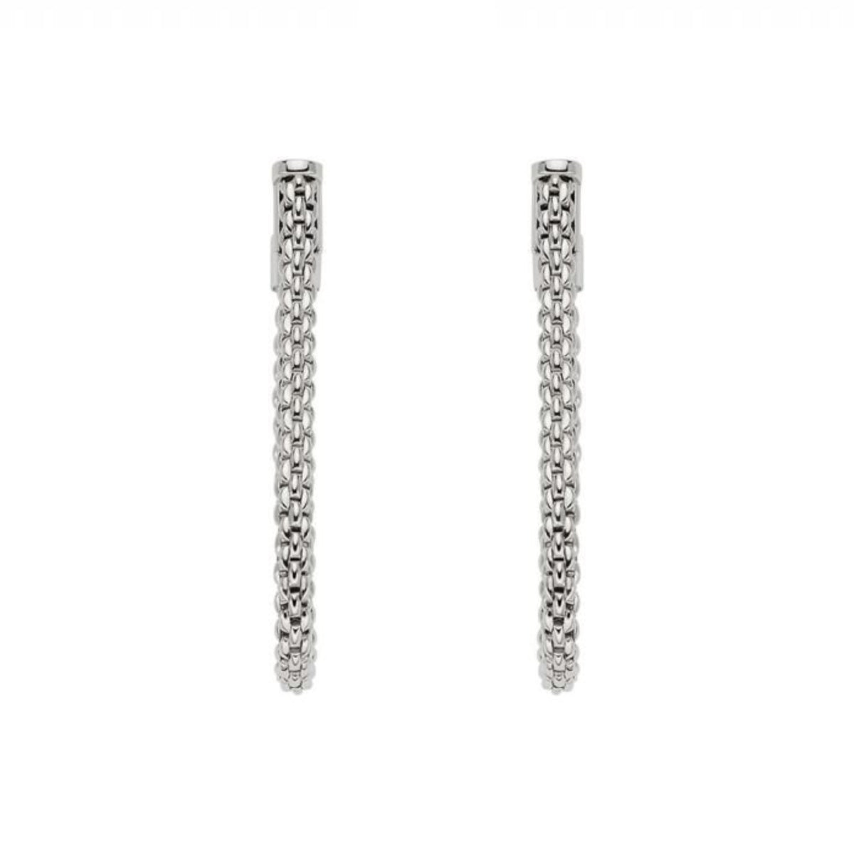 18 carat white gold hoop earrings with Flex'it mesh chain from Fope's Essentials collection.