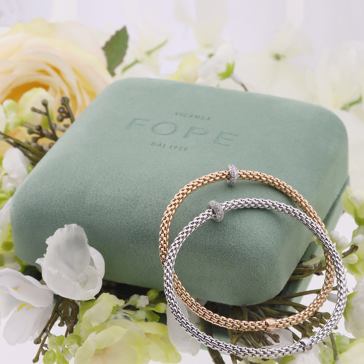 In modern day, Fope combines the strength of its long-standing values with a true flair for innovation, creating unique jewellery which is exported to over fifty countries around the world. The business is still situated in Vicenza from where it still moves proudly forwards, blending the skill of expert goldsmiths with the precision of leading-edge technologies.