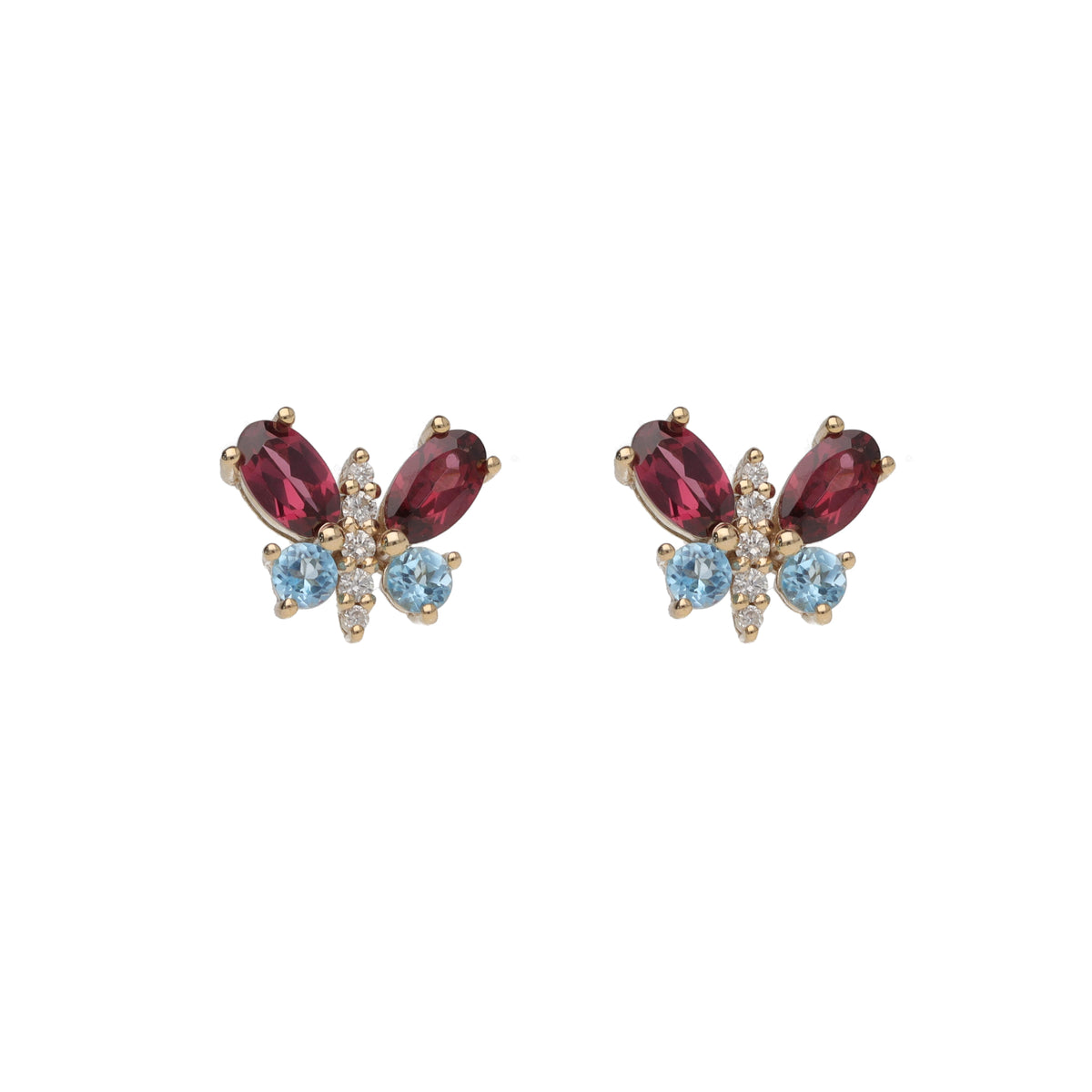 Amethyst and Topaz 9ct Yellow Gold Butterfly Stud Earrings