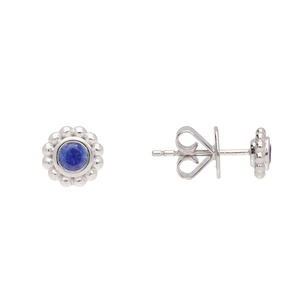 Blue Sapphire 18ct White Gold Beaded Stud Earrings
