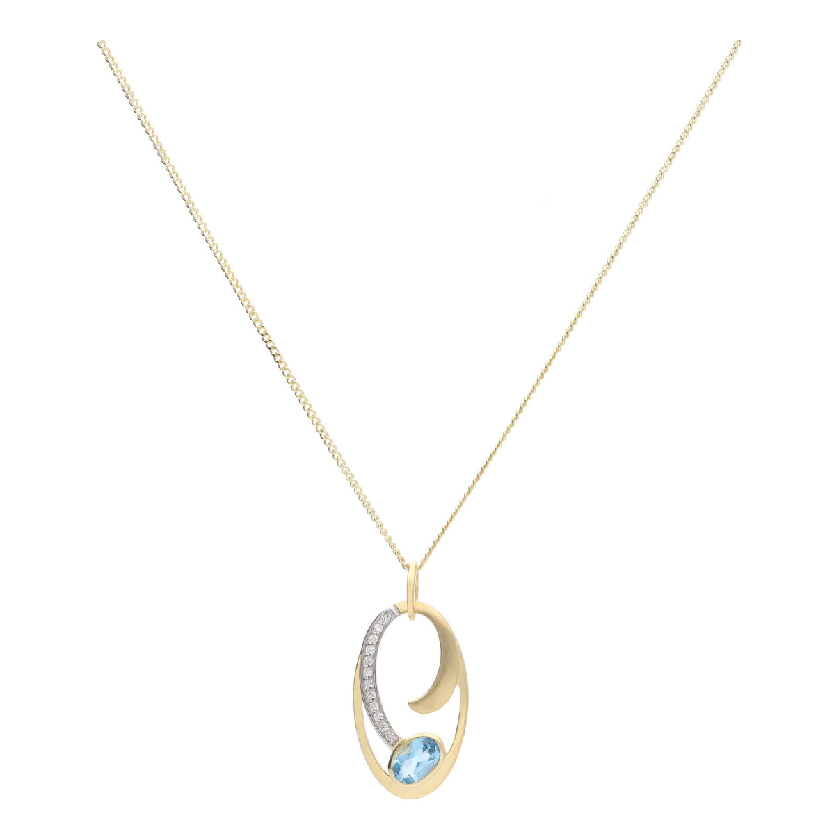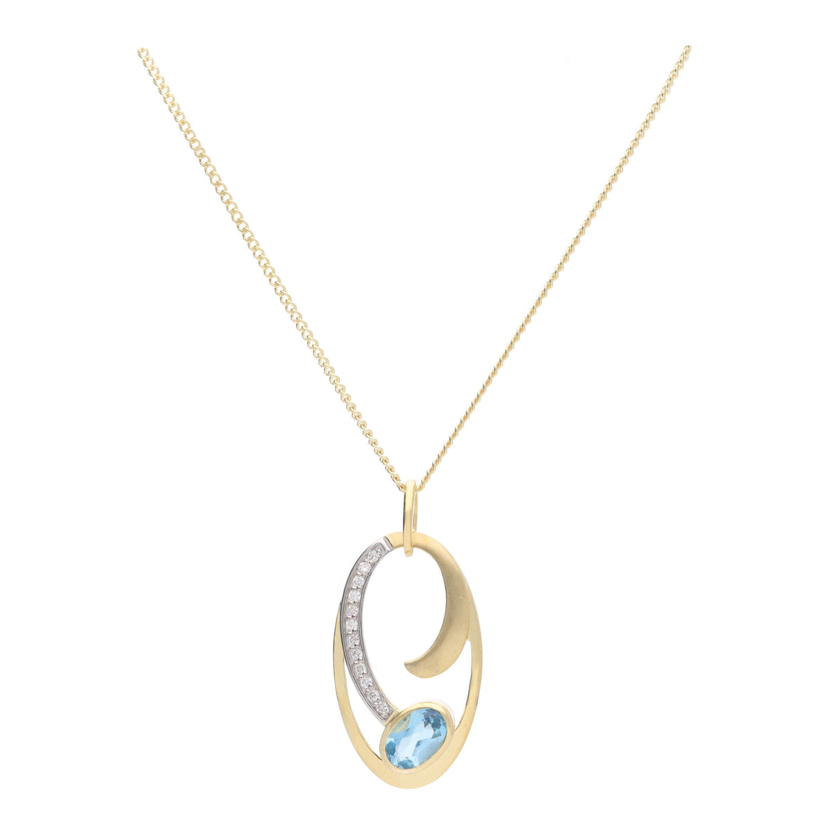 Blue Topaz and Diamond 9ct Yellow Gold Necklace