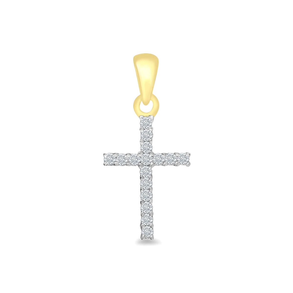 Delicate diamond set cross pendant in 9ct yelow gold. Total diamond weight: 0.06ct. Cross measures 11mm (excluding bale). Please note: This pendant does not include a chain.