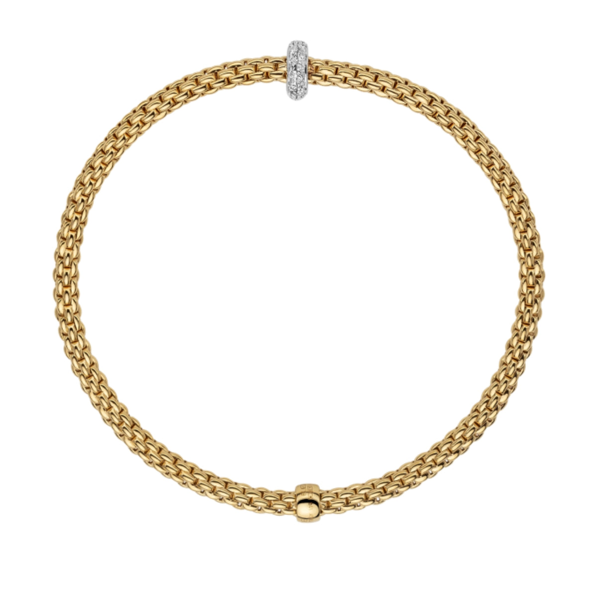 FOPE Flex'it Prima 18ct Yellow and White Gold 0.18ct Diamond Set Bracelet Medium