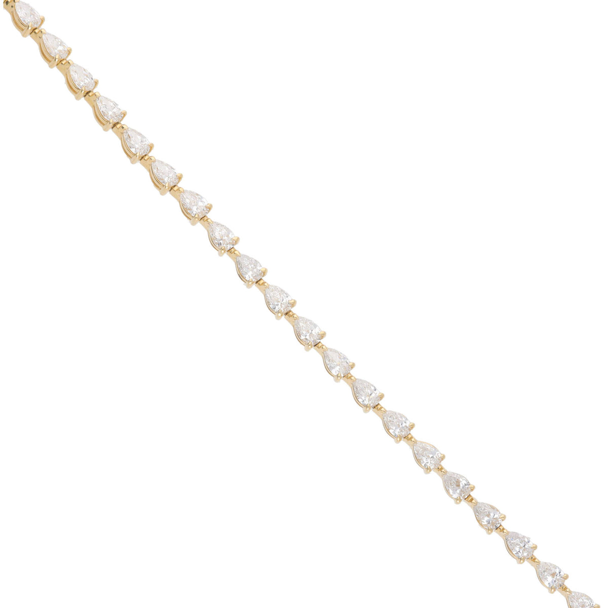 This exquisite tennis bracelet features a total of 7.00ct pear shape laboratory grown diamonds in a claw setting, set in 18ct yellow gold with a box clasp.
