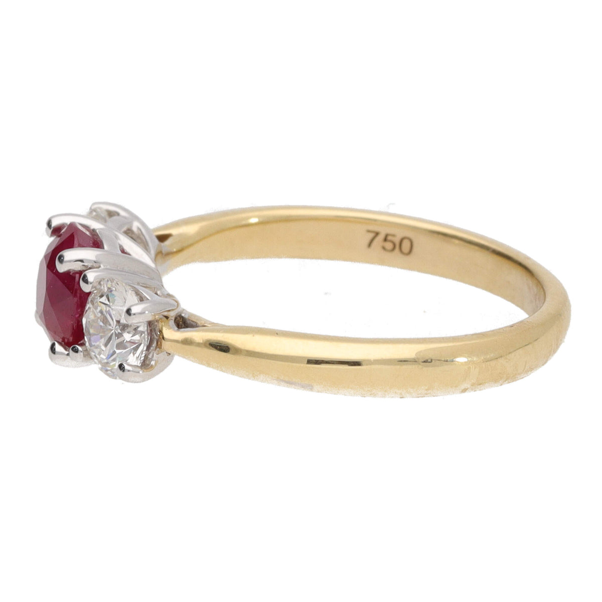 Ruby and Diamond 18ct Yellow Gold Three Stone Ring