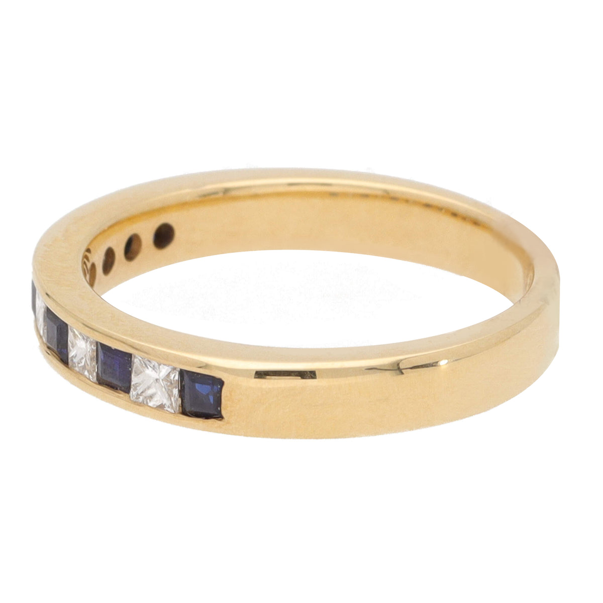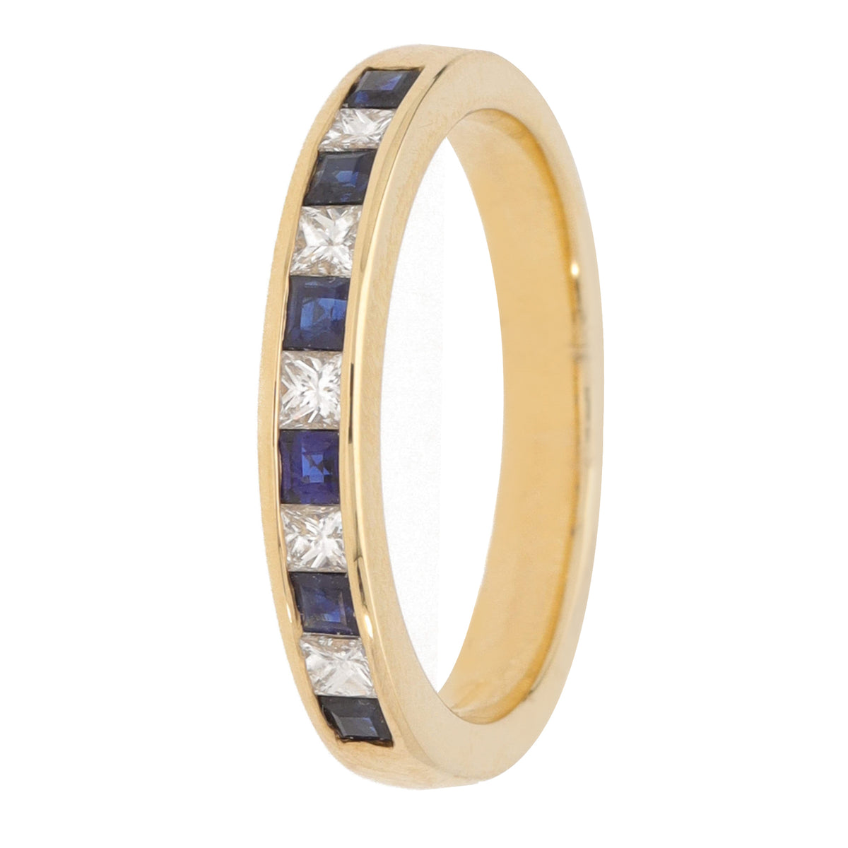 Sapphire and Diamond 18ct Yellow Gold Princess Channel Set Half Eternity Ring