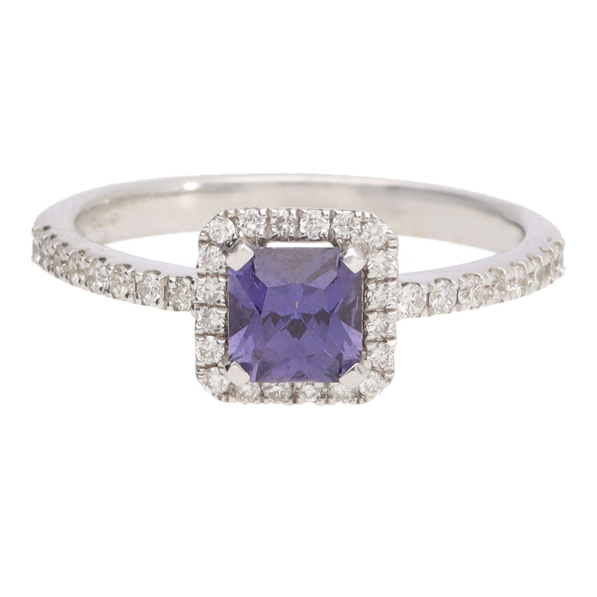 Unheated Sapphire and Diamond 18ct White Gold Cluster Ring (N)
