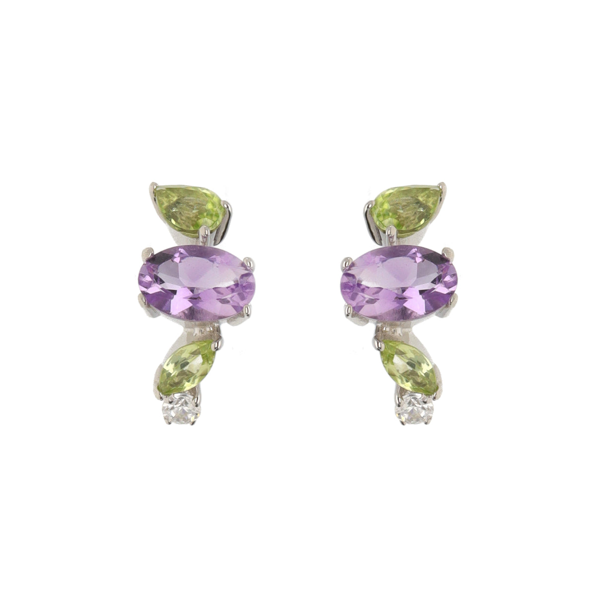 Amethyst, Peridot and Cubic Zirconia Sterling Silver Curve Earrings