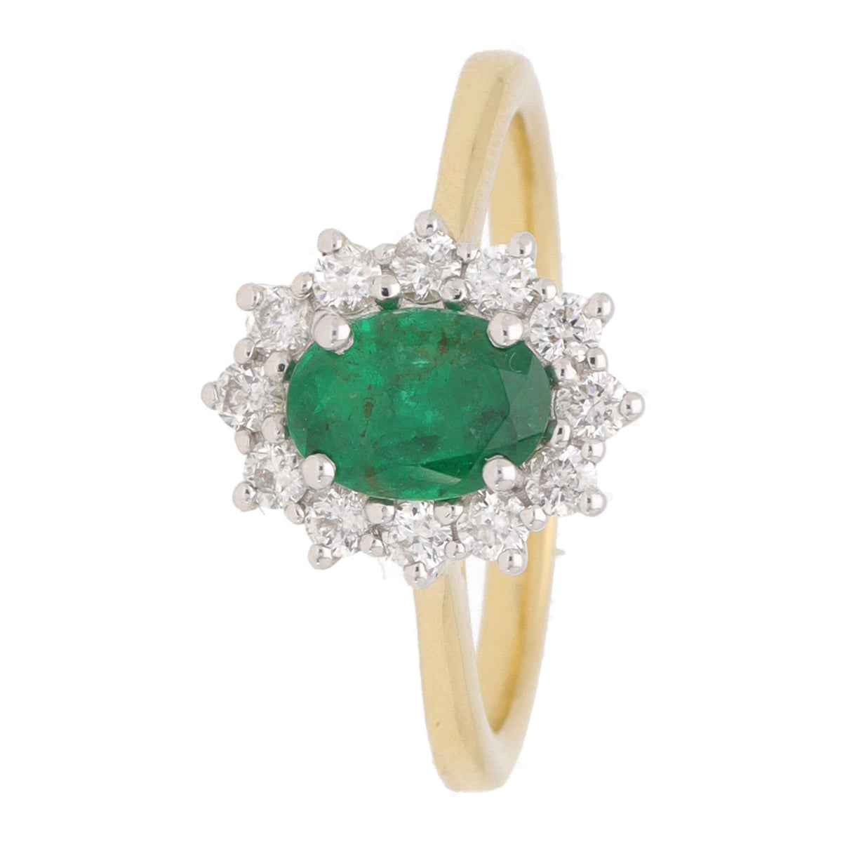 Emerald and Diamond Oval 18ct Yellow Gold Cluster Ring
