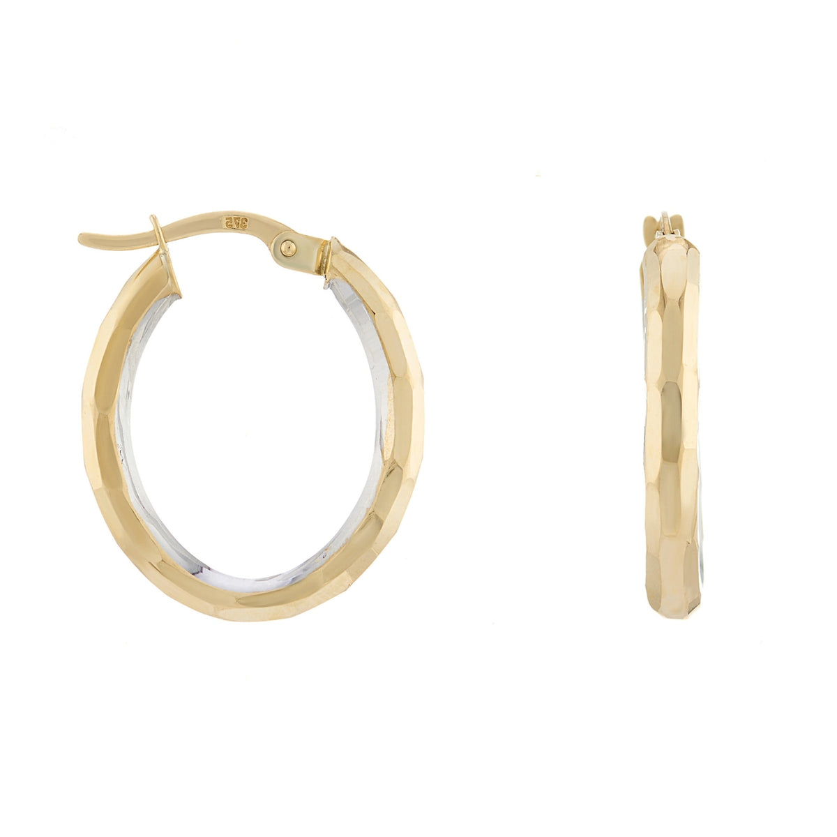 Faceted Oval 9ct Yellow Gold Hoop Earrings