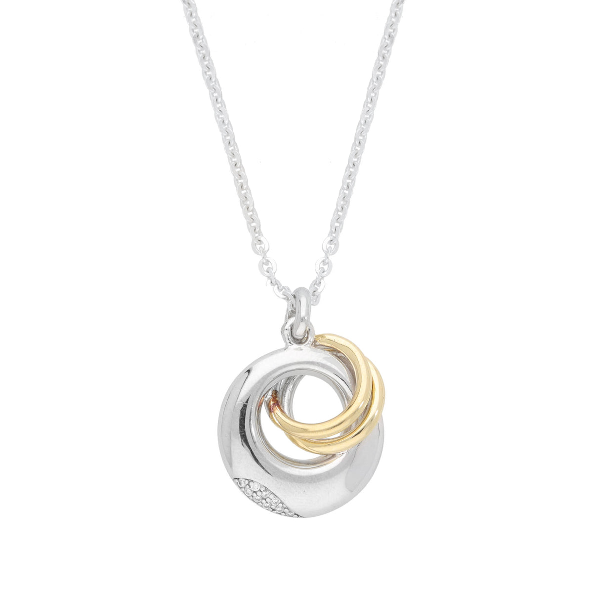 Cubic Zirconia Silver and Yellow Gold Plated Circle Necklace
